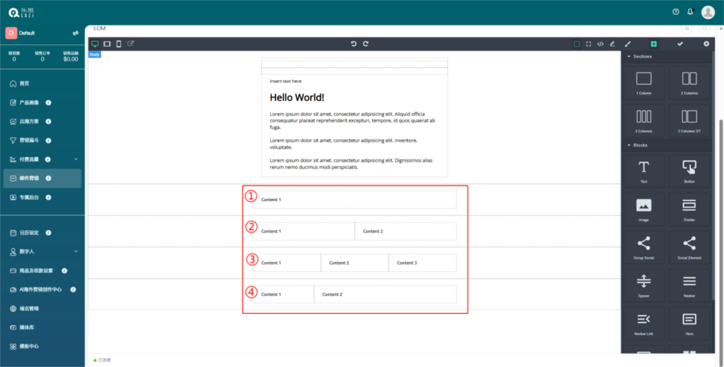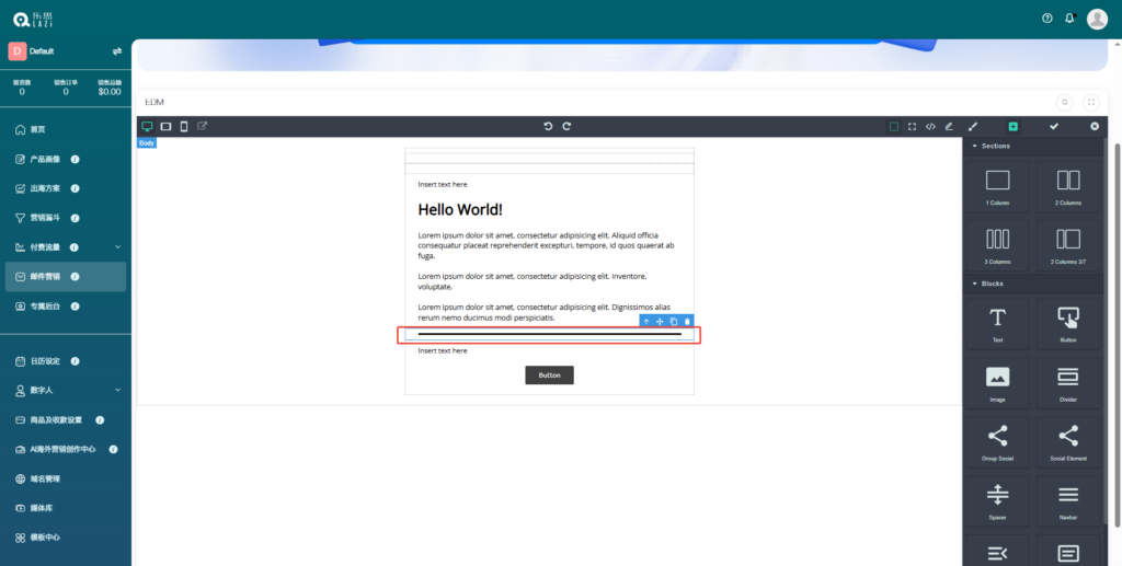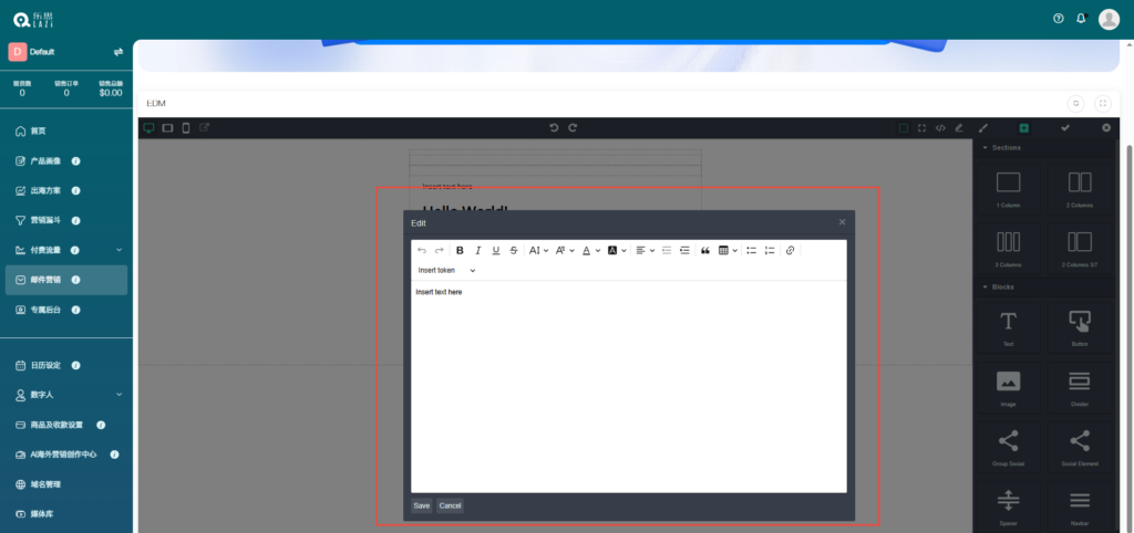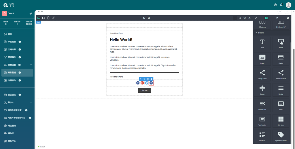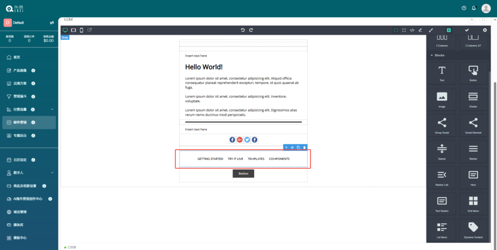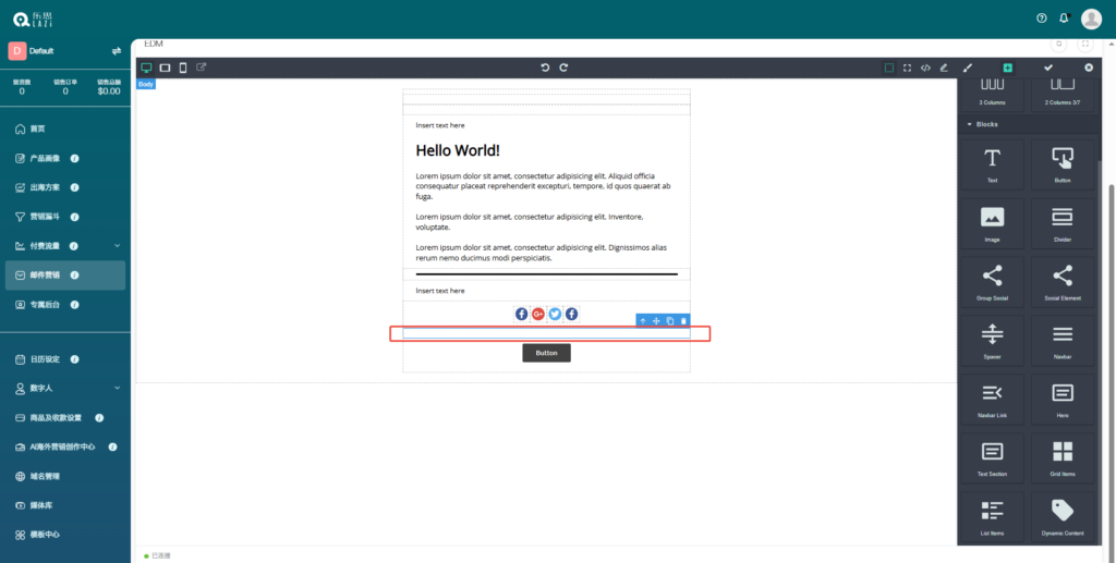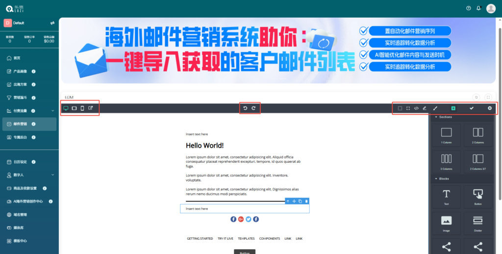 邮件营销作为海外营销重要的组成部分,为了让大家更便捷地使用邮件功能,乐思系统内置了专门的邮件编辑器,以下邮件编辑器的详细介绍: