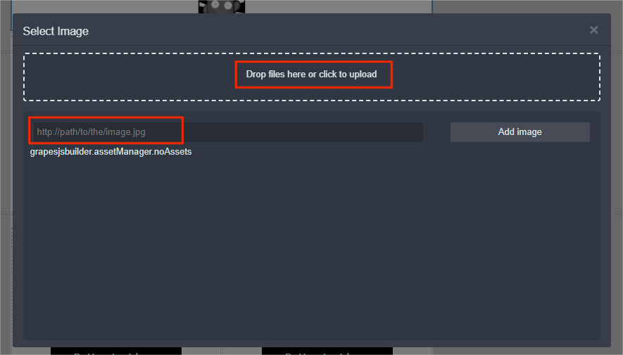 ⑧鼠标对模块双击,我们可以进行模块的进一步修改,如对图片模块双击,在弹窗红框“Drop files here or click to upload”的位置可以上传自己想要的图片,或下方输入图片地址添加图片;