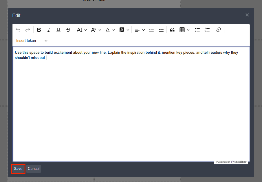 ⑨类似的选中红框标记的文本模块鼠标双击,在弹窗界面我们可以对文本进行编辑,修改完成点击弹窗红框标记的“Save”即可保存;