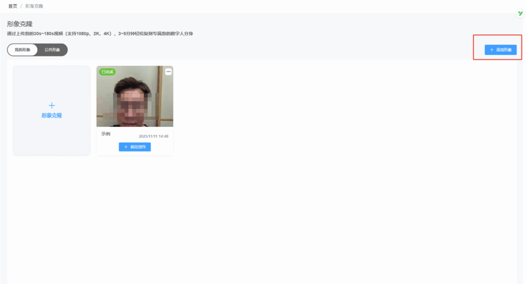 ①点击系统左侧菜单栏【数字人】功能下的“我的作品”,点击红框标记的“开始创作”或右上角的“前往创作”;