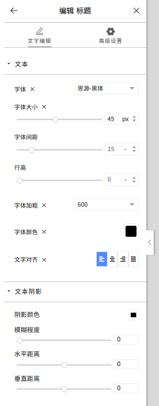 界面左边的操作窗口,可以调整文本的具体参数,我们可以根据自己的需求去做细节调整;