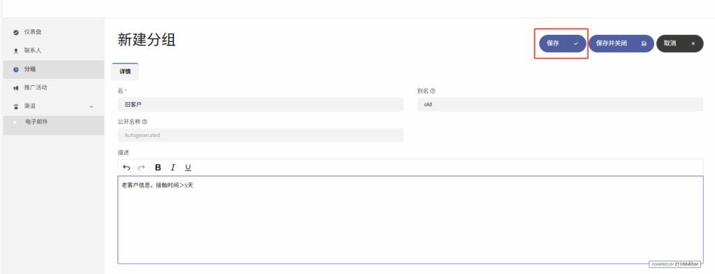 ②在“新建分组”界面补充对应信息后,点击“保存”即可;