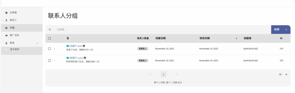 ③回到联系人分组界面,可以查看已生成的客户分组。
