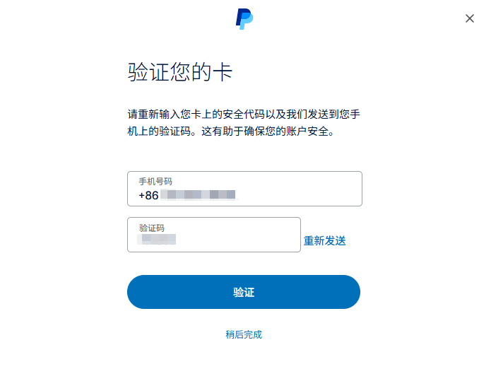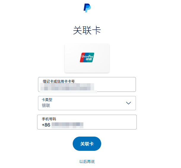 ⑥补充PayPal账户关联的卡片信息,完成后点击下方的“关联卡”;