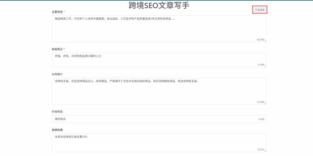 ①在系统左侧菜单栏点击【AI海外营销创作中心】,选择【跨境SEO文章写手】;