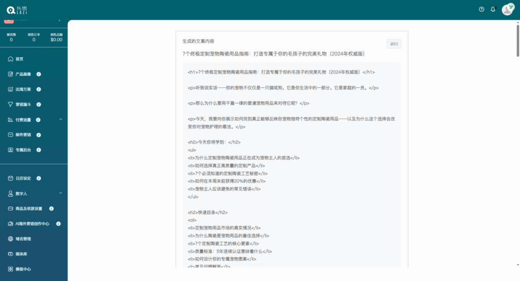 乐思系统配备跨境SEO文章AI写手功能,能帮大家快速写出SEO文章。下面是具体的使用步骤: