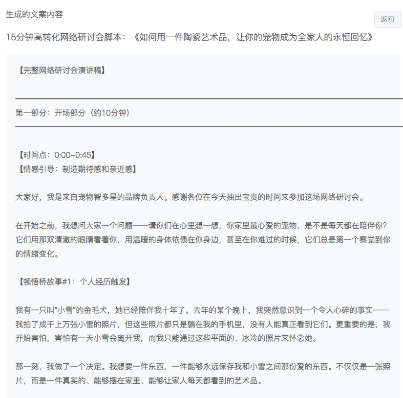 ⑤待短暂加载结束,讲座脚本出来后,可以点击最下方的“复制文案”储备起来。